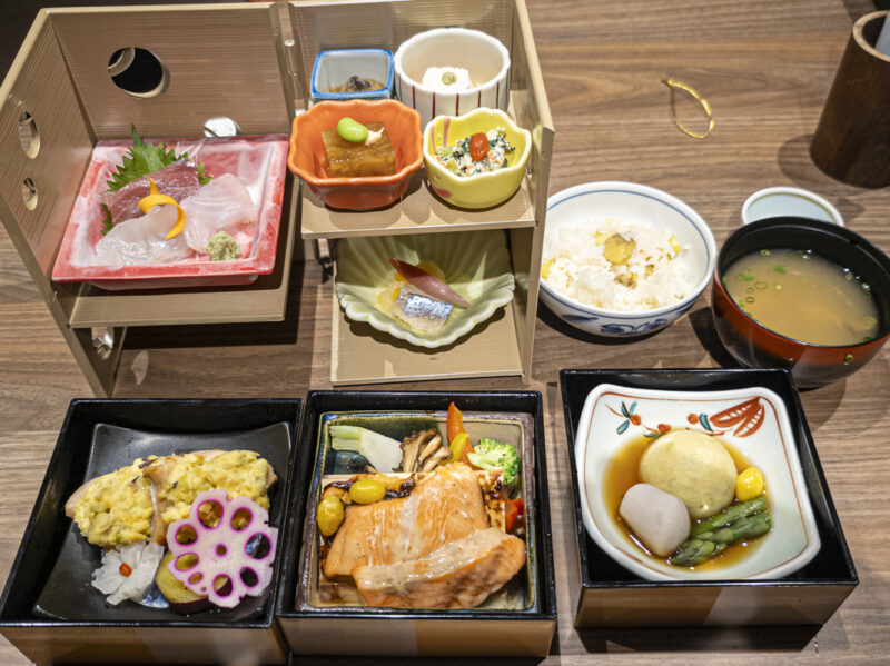 朝食はゲストハウスにあるレストランにてです。徒歩でも5分ほどで着きますが上りの坂道で勾配がそれなりにあるので、部屋にあるタブレットよりバスを呼ぶのもありです。すぐ来てくれます。