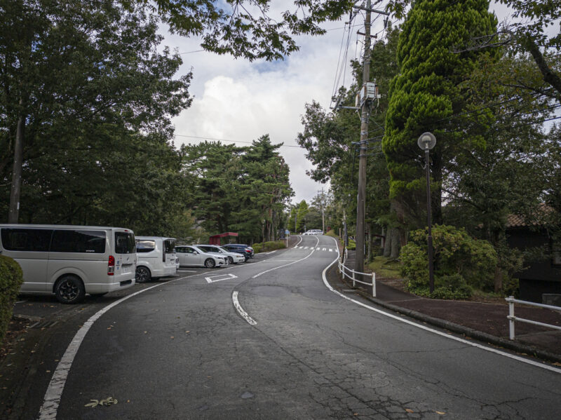 チェックインはこの先にあるゲストハウスで行います。修善寺駅からのシャトルバスの終点にあります。
