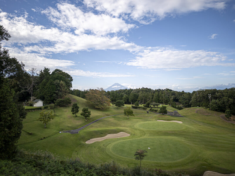 ゴルフ場の奥に富士山が見えます。富士山が見えることを標榜する割には曇り空が多くて見えない日が多かったのですが、こんなにくっきり見える時間帯もありました。