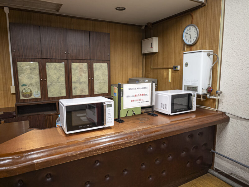 センターハウスの入口には電子レンジがあるので、持ってきた食品を温めることができます。