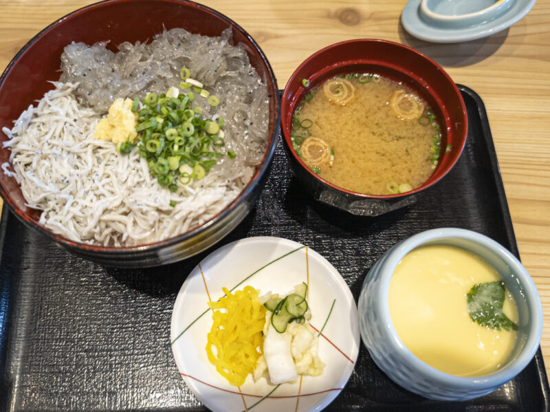 帰りの三島駅で乗り換え時に、駅前のまるごと駿河湾 三島駅店で食べた生しらす釜揚げしらす丼です。生しらすと釜揚げしらすのハーフ&ハーフになって、二つを同時に楽しめます。でも意識が分散してしまうので、どっちか一つに絞って食べたほうが良いかなとも思いましたww