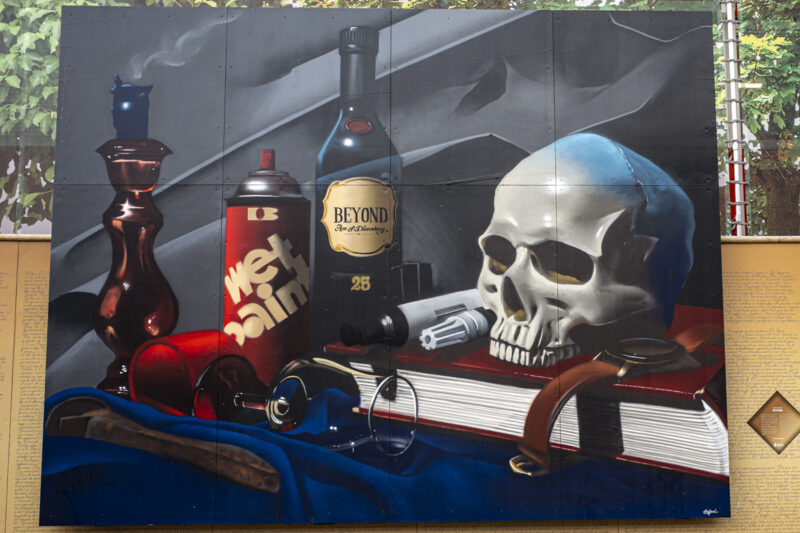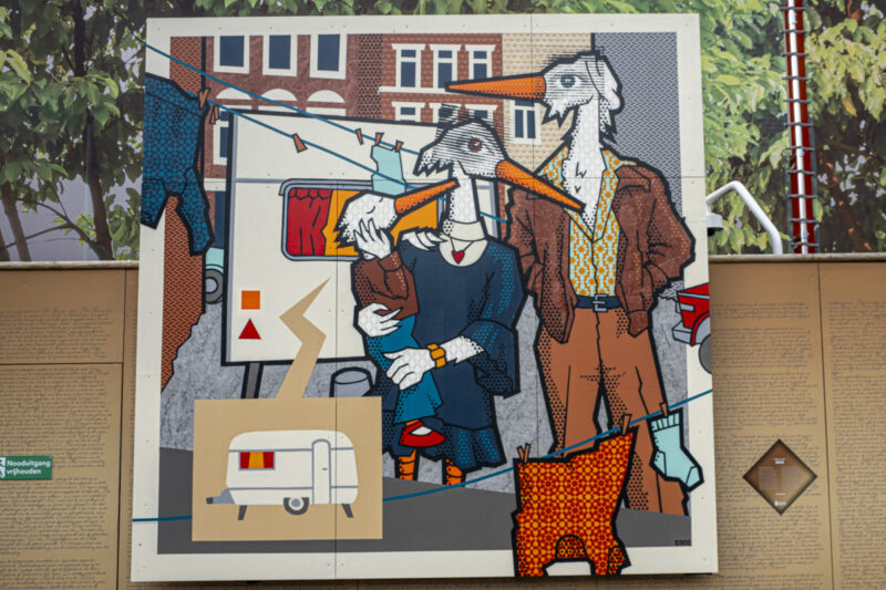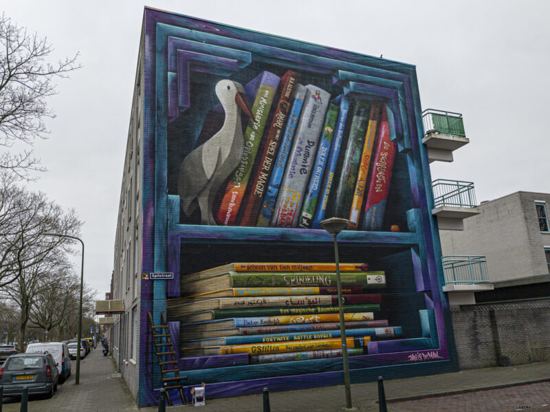 JanIsDeManの本棚を壁面に描いたミューラルです。JanIsDeManはユトレヒトを拠点としており、オランダにはミューラルがたくさんあります。中でも本棚を描いた3Dの作品がトレードマークです。
