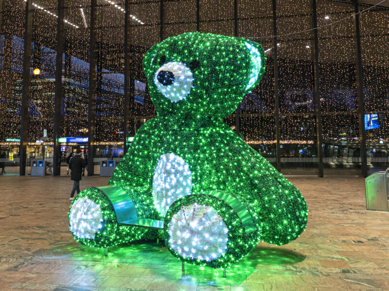 ロッテルダム・セントラル駅の中のセルフィースポットです。今年は緑色でした。