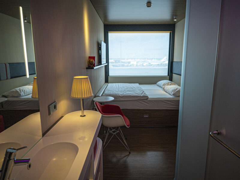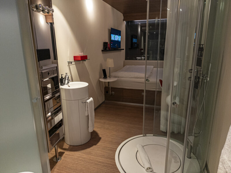 シチズンMサウスと同じセルフチェックインや部屋のタブレットのシステムですが、シチズンMスキポール空港のほうが部屋が広くて、快適度は上でした。洗面台が広めなのがいいですね。